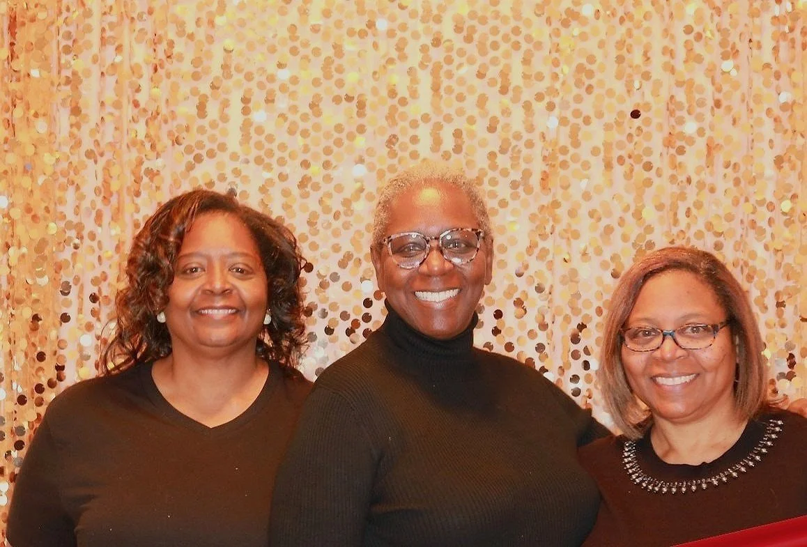 Kimberly (middle) with her sisters at the Pass It On Foundation Christmas Gala 2023.